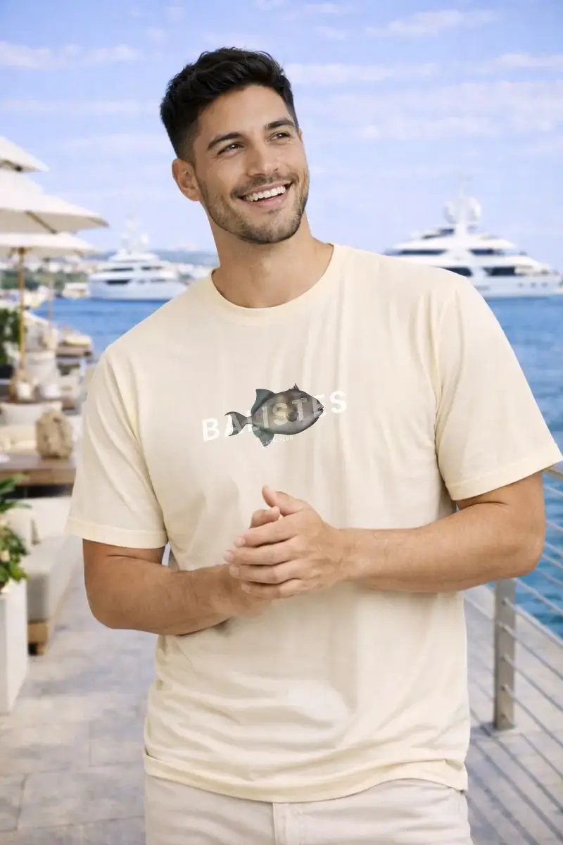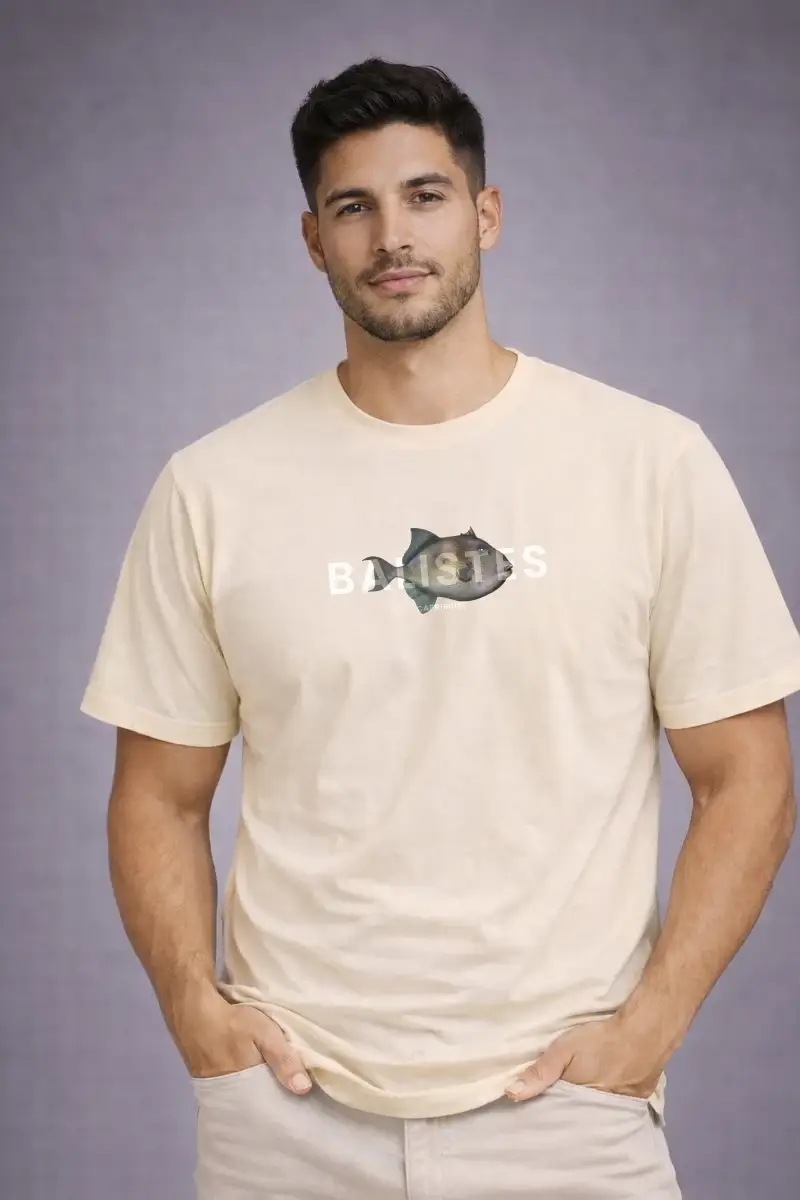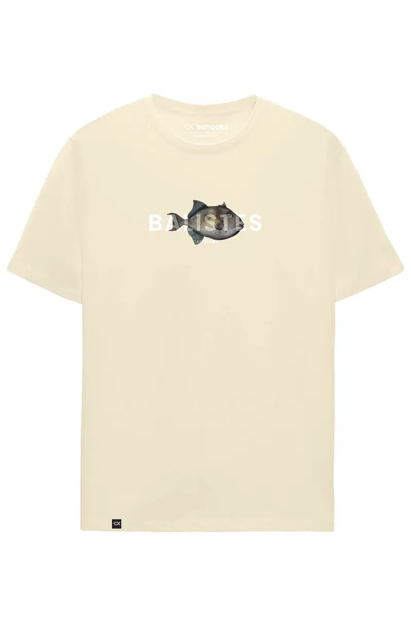 Camiseta Pez Ballesta, Balistes Capriscus Realistic. Nuevo modelo de una bastante curiosa y con unos detalles muy molones. Los podemos encontrar tanto en el litoral Mediterráneo como en el Atlántico. Nuestra nueva camiseta del pez ballesta, va acompañada con su nombre biológico. Camiseta regular fit 185gr. unisex. Algodón orgánico 100%, podrás encontrarla en color arena de momento. ¡No te quedes sin la tuya!