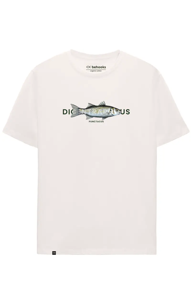 Camiseta Dicentrarchus Punctacus Realistic. Nuevo modelo de una especie especial para pescadores a Surfcasting y sobre todo a Spinning tanto en el litoral Mediterráneo como en el Atlántico. Nuestra nueva camiseta de la baila, va acompañada con su nombre biológico. Camiseta regular fit 185gr. unisex. Algodón orgánico 100%, podrás encontrarla en negro y Blanco roto. ¡No te quedes sin la tuya!