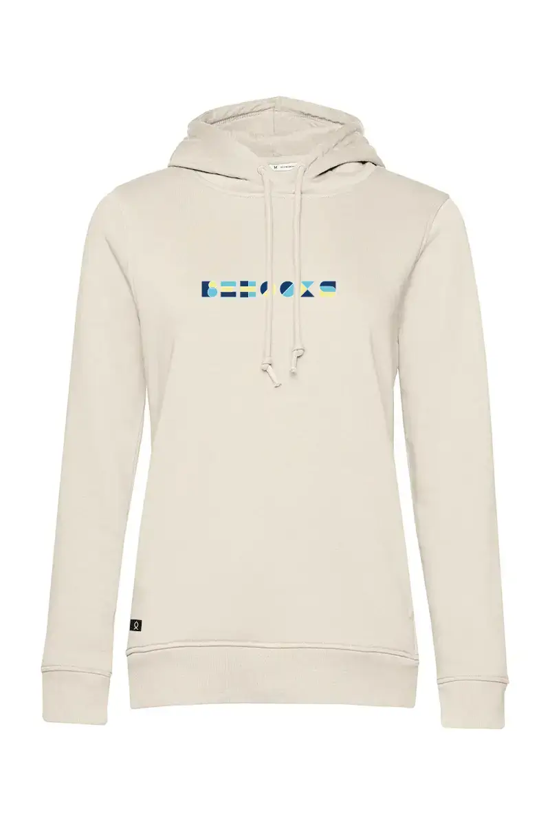 Sudadera con capucha o hoddie para mujer. Modelo Geometry. Otro modelo de la marca utilizando un diseño minimalista del isologo de la marca en positivo y negativo. Sudaderas de Algodón 100% orgánico de 280gr. Es una hoodie finita, ideal para el entretiempo de ahora. Disponible en color blanco roto, rosa y azul marino. Prenda exclusiva para mujeres.
